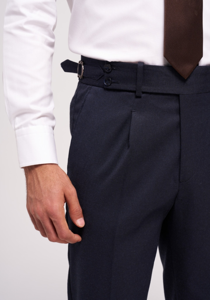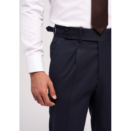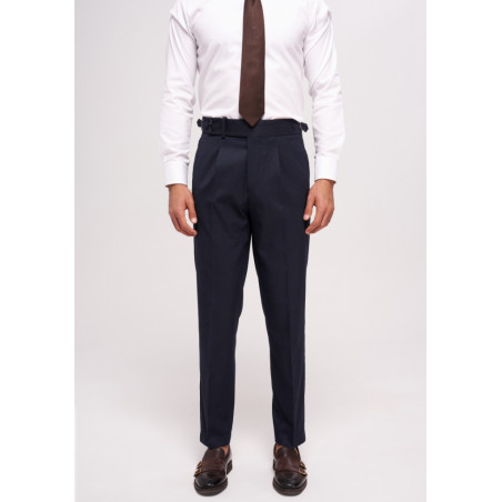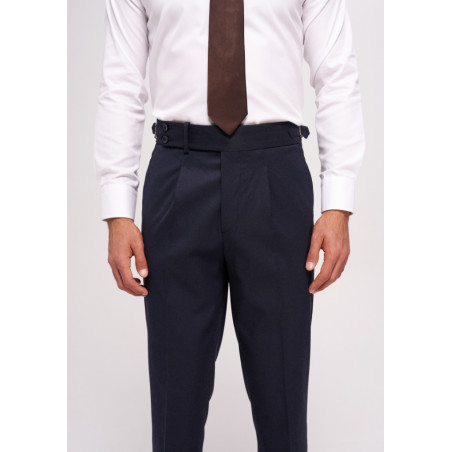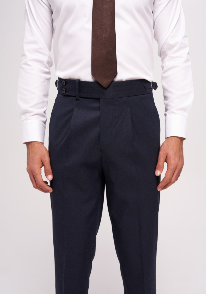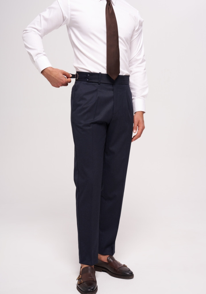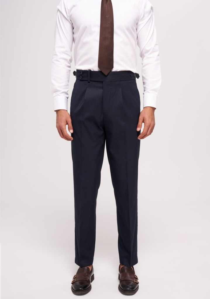 Lacivert Tek Pile Yüksek Bel Pantolon