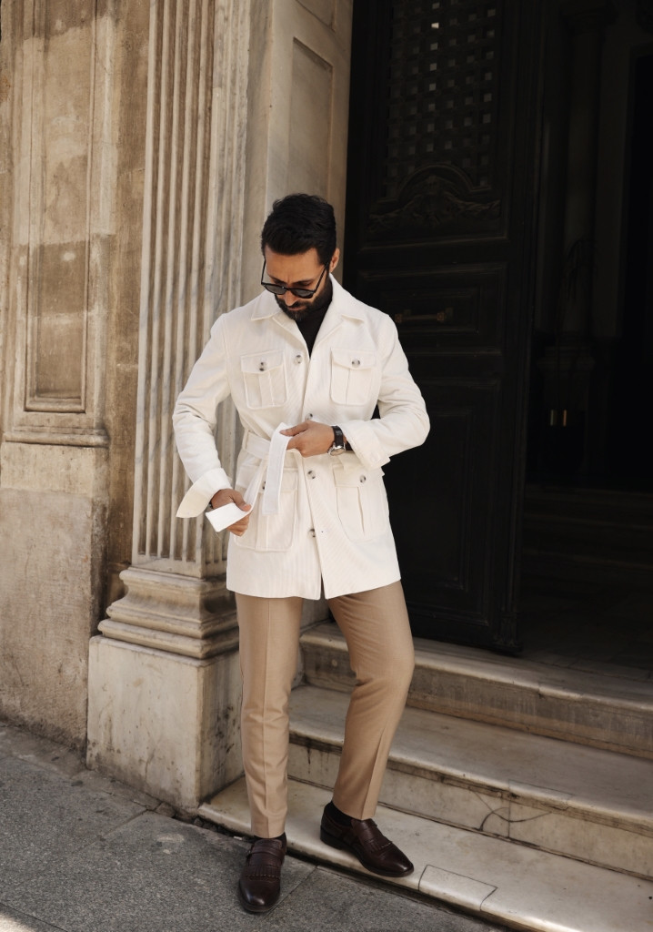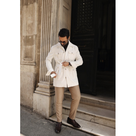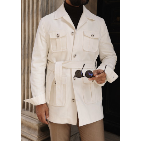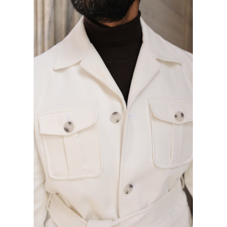Beyaz Kadife Safari Ceket